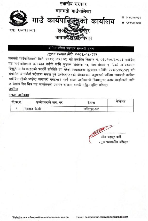 अन्तिम नतिजा प्रकाशन सम्बन्धी सूचना (फुटबल प्रशिक्षक)
