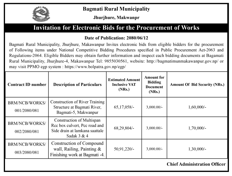 निर्माण कार्यको वोलपत्र आव्हान सम्बन्धि सुचना