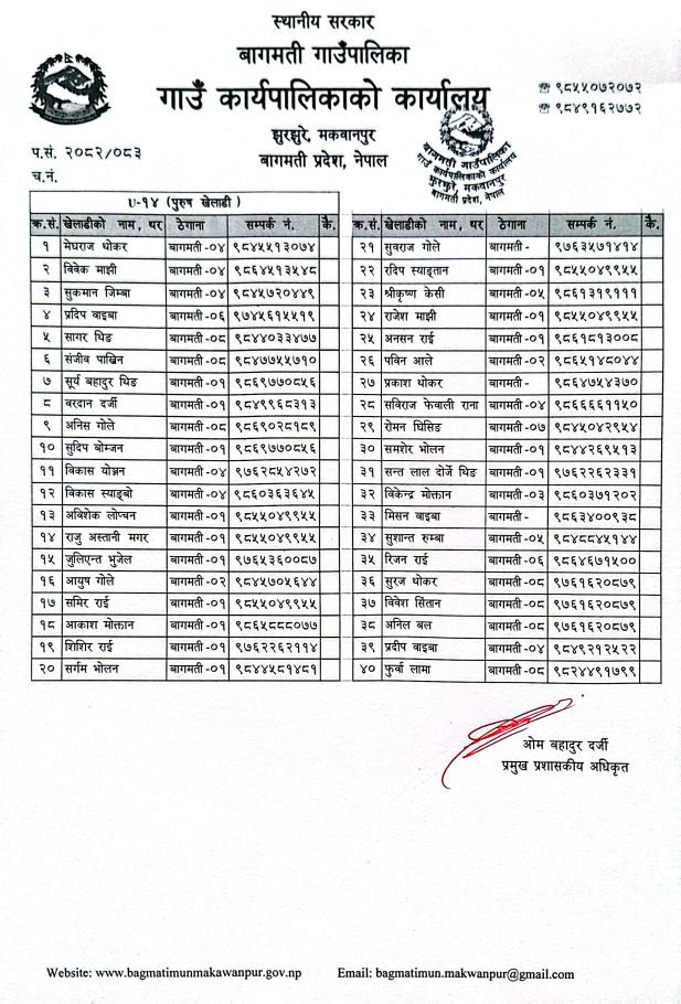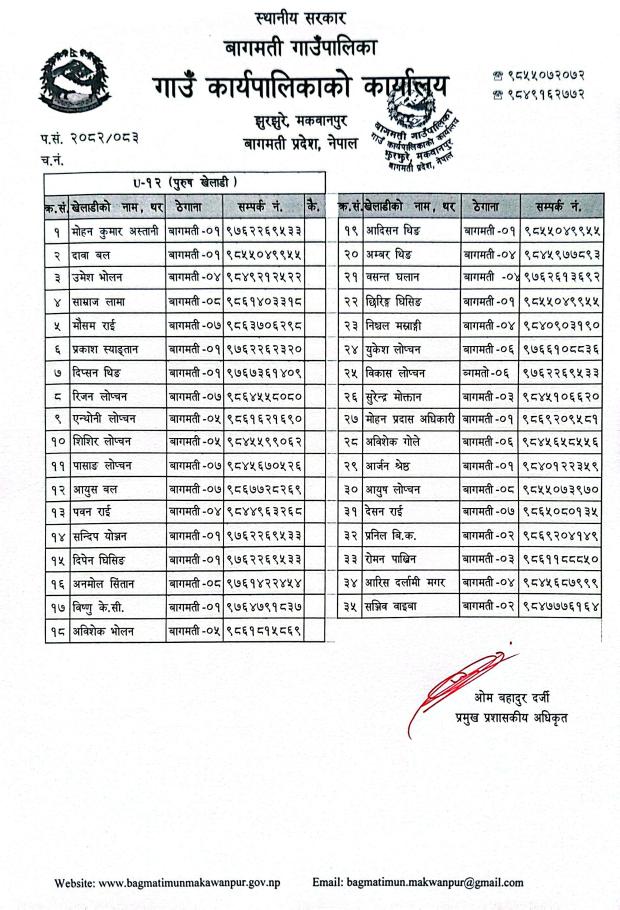 बागमती फुटबल टिमका खेलाडीहरु तालिममा सहभागिता हुने सम्बन्धी अत्यन्त जरुरी सूचना