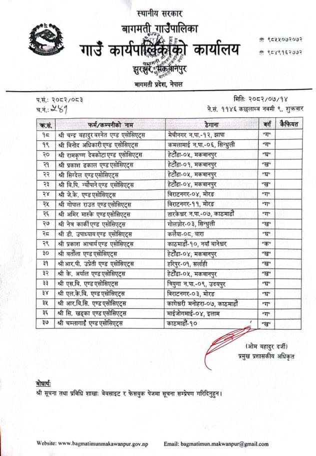 सन्क्षिप्त सुची प्रकाशन सम्बन्धमा (मेडिकल अधिकृत)