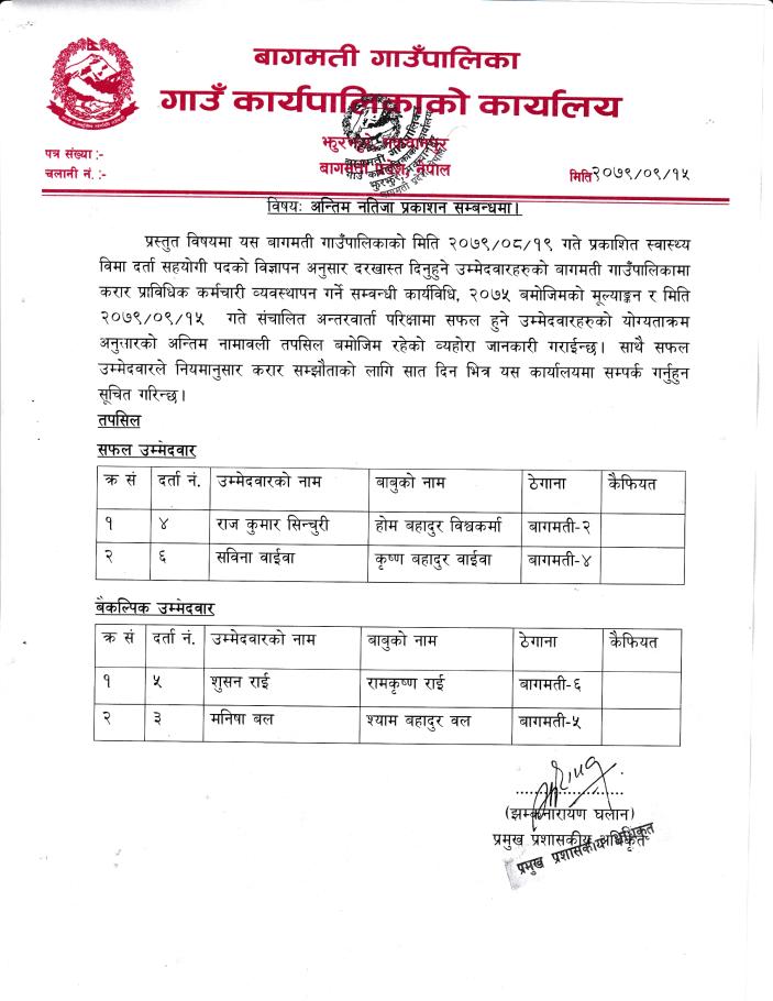 अन्तिम नतिजा प्रकाशन गरिएको बारे।