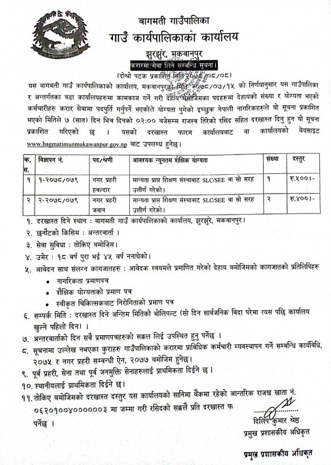 करारमा सेवा लिने सम्वन्धी सूचना (दोश्रो पटक प्रकाशित) l