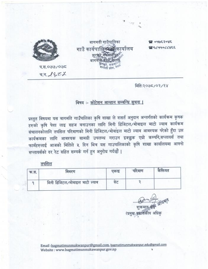कृषि बिकास शाखाको विविन्न कार्यक्रमहरु संचालन सम्बन्धी जरुरी सूचना (दोश्रो पटक प्रकाशित)