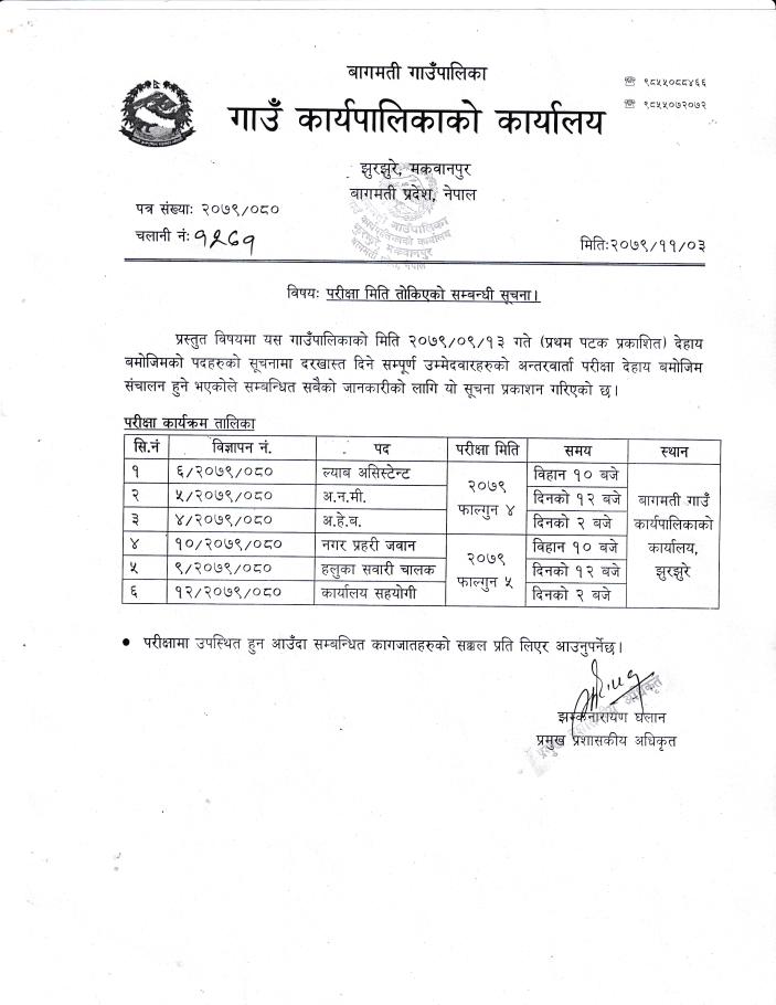 परीक्षा मिति कायम गरिएको सम्बन्धी सूचना