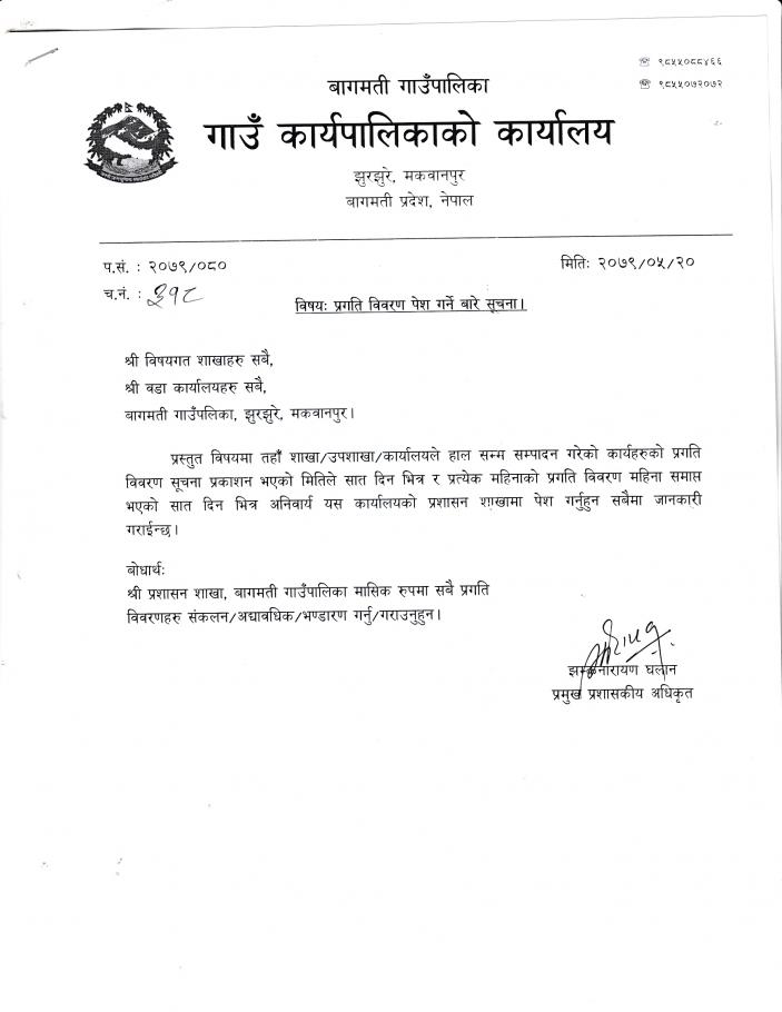 प्रगति विवरण पेश गर्ने सम्बन्धी सूचना।
