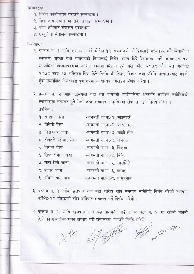 मिति २०७८/०९/२९ गते बसेको विपद व्यवस्थापन समितिको निर्णयहरु l