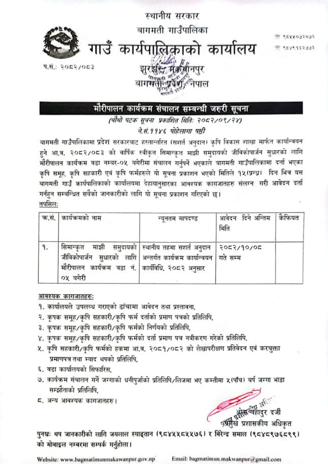 मौरीपालन कार्यक्रम संचालन सम्बन्धी जरुरी सूचना (चौथो पटक प्रकाशित: २०८२/०९/२४))