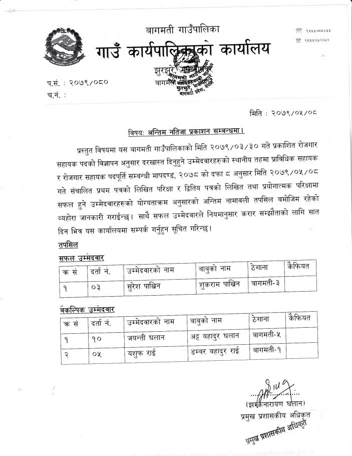 » रोजगार सहायक पदको अन्तिम नतिजा प्रकाशन गरिएको बारे।