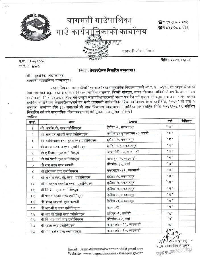 » लेखापरिक्षक सिफारिस सम्बन्धी सूचना।।
