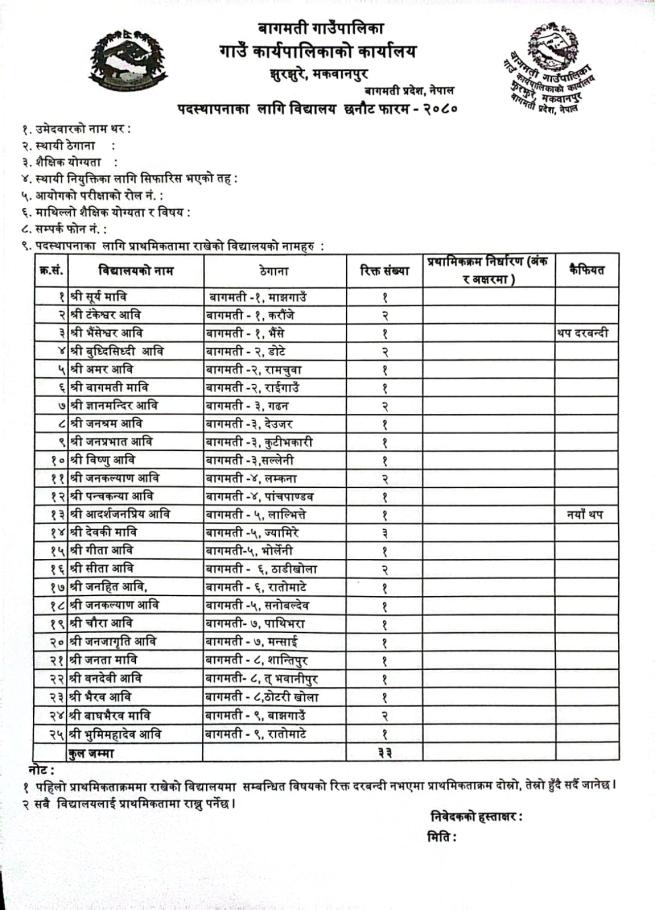 » विद्यालय छनौटको लागि पदस्थापना फारम भर्ने सम्बन्धी सूचना।