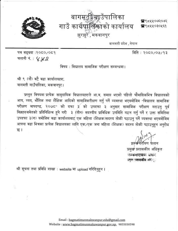 विद्यालय सामाजिक परीक्षण सम्बन्धी सूचना ।