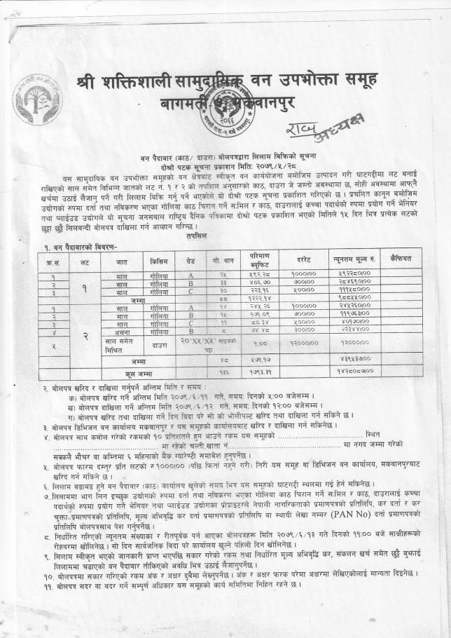 शक्तिशाली सामुदायिक वन उपभोक्ता समूहको बोलपत्र अहवान सम्वन्धी सूचना