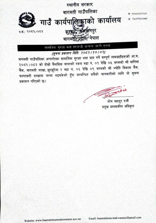 » सामाजिक सुरक्षा भत्ता सम्बन्धी अत्यन्त जरुरी सूचना।