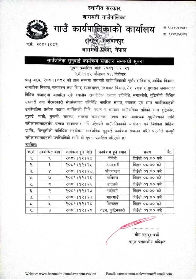 सार्वजनिक सुनुवाई कार्यक्रम सञ्चालन सम्बन्धमा |