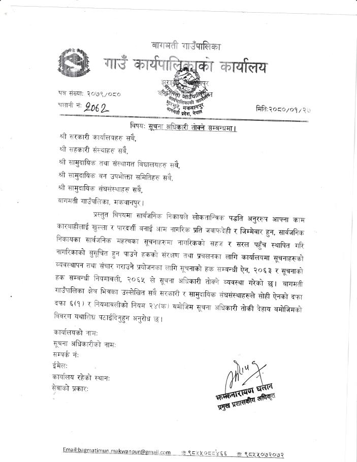 सूचना अधिकारी तोकी जानकारी पठाउने सम्बन्धी सूचना।।