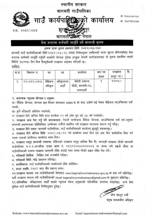 सेवा करारमा कर्मचारी पदपूर्ति गर्ने सम्बन्धि सूचना।