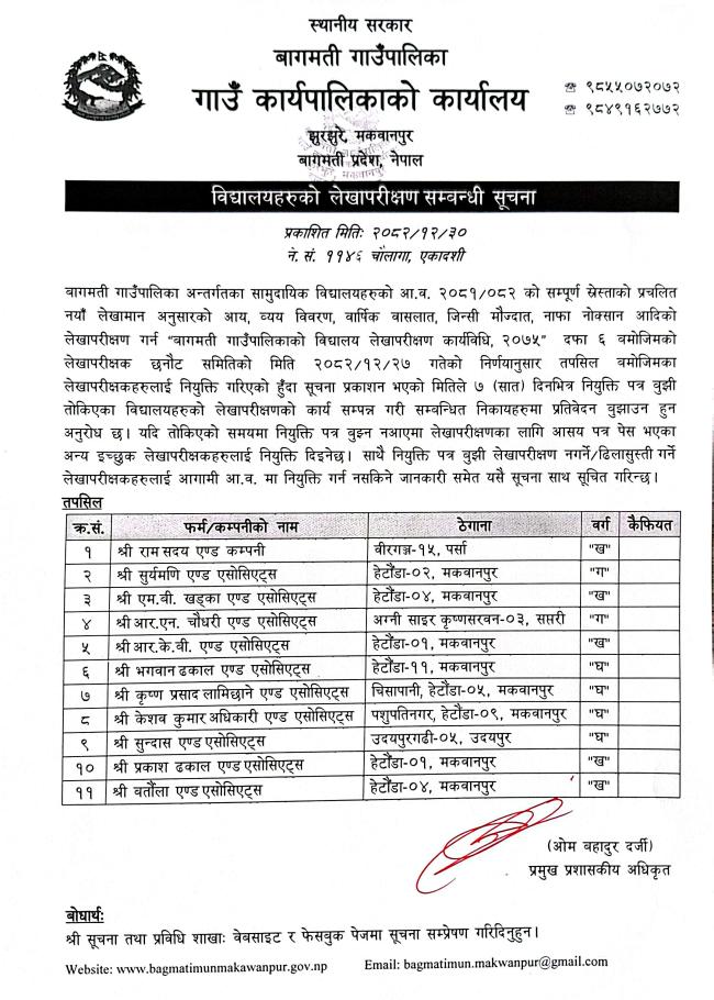 विद्यालयहरुको लेखापरीक्षण सम्बन्धी सूचना
